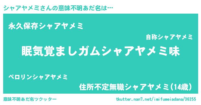 | ヘコむあだ名 | 『シャアヤメミ(爆)』『シャもー』 |