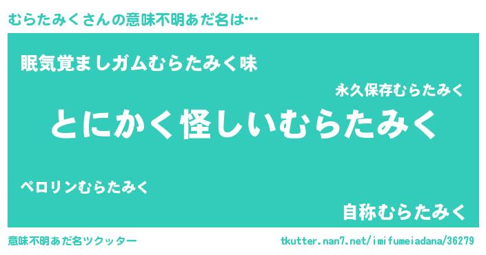 | ポケモン風あだ名 | 『ヒムラタミク』『ムックウザ』 |