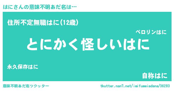 | 女子向けラノベタイトル風あだ名 | 『はにの卵を拾いまして』 |
