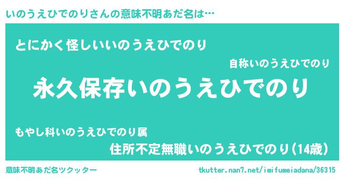 | 男性向けラノベタイトル風あだ名 | 『いのうえひでのりという概念が存在しない退屈な世界 』 |