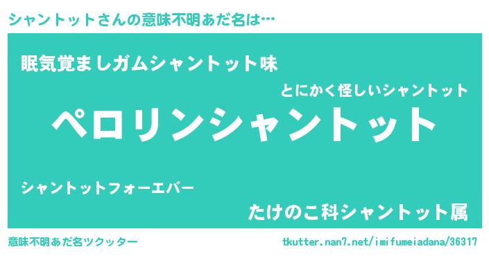 | 男性向けラノベタイトル風あだ名 | 『シャントットアートオンライン』 |