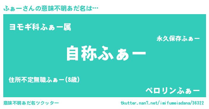 | 女子向けラノベタイトル風あだ名 | 『ふぁーなんてお断りですっ。』 |