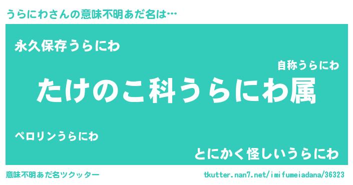 | 男性向けラノベタイトル風あだ名 | 『転生したらうらにわだった件』 |