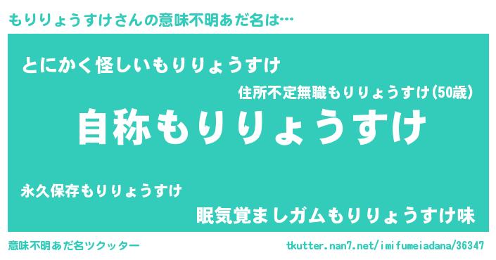 | 女子向けラノベタイトル風あだ名 | 『もりりょうすけなんてお断りですっ。』 |