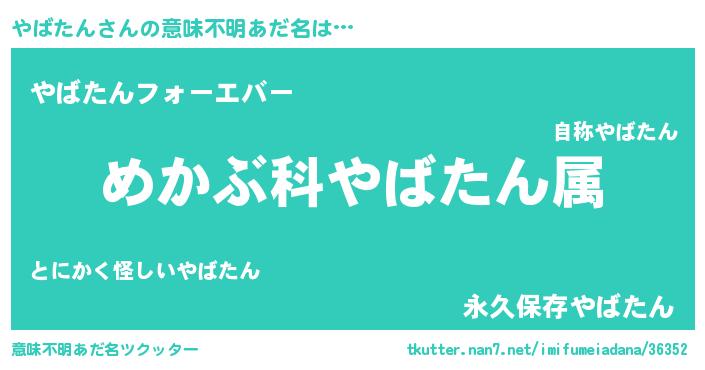 | ヒーロー風カッコイイあだ名 | 『ウルトラやばたんマン』『ネオヤバタン』 |