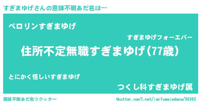 | 男性向けラノベタイトル風あだ名 | 『うちのすぎまゆげが世界を掌握している!』 |