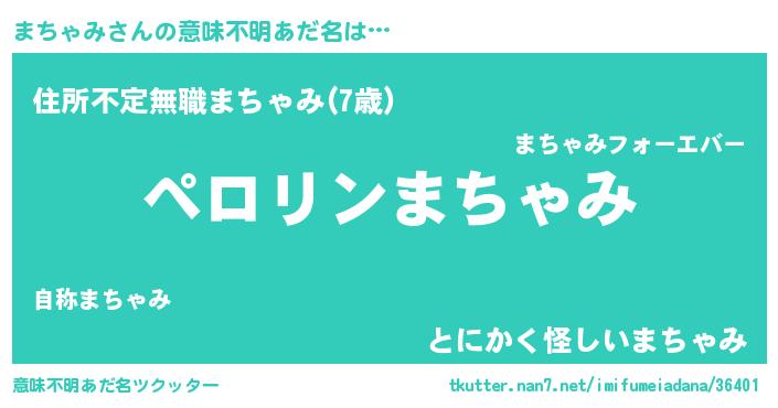 | 欧米人風あだ名 | 『まちゃみ・ステッグマイヤー』 |