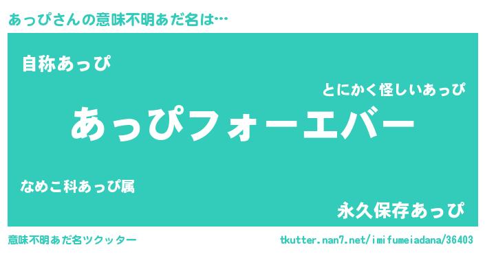 | ヒーロー風カッコイイあだ名 | 『ウルトラあっぴマン』『最強戦士アッピ』 |