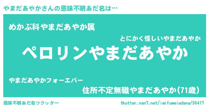| 胡散臭い通販商品みたいなあだ名 | 『モテモテ間違いなし霊験あらたかなお札…その名も「やまだあやか」』 |