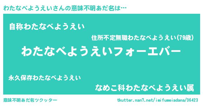 | 肩書あだ名 | 『わたなべようえい国家主席』 |