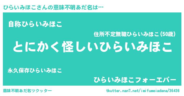 | ヒーロー風カッコイイあだ名 | 『魔戒騎士ヒラ』『究極戦士ヒライミホコ』 |