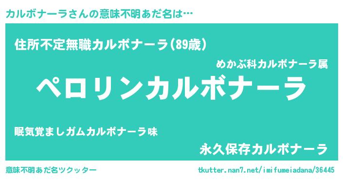 | 男性向けラノベタイトル風あだ名 | 『カルボナーラの憂鬱』 |