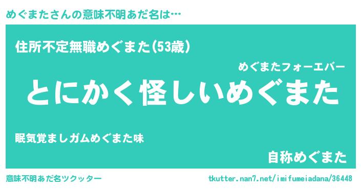 | 胡散臭い通販商品みたいなあだ名 | 『全米が絶賛したサプリメント…その名も「めぐまた」』 |