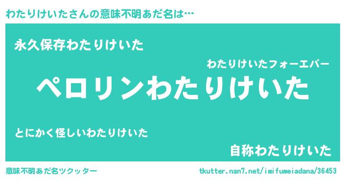 | 男性向けラノベタイトル風あだ名 | 『わたりけいたに滅ぼされるだけの簡単なお仕事です』 |