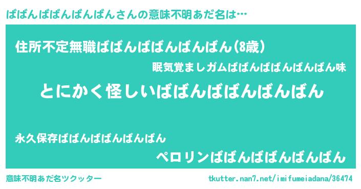 | ポケモン風あだ名 | 『メロバッバ』『ヒババンババンバンバン』 |