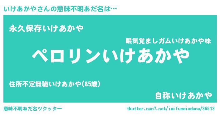 | 男性向けラノベタイトル風あだ名 | 『いけあかやの憂鬱』 |