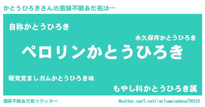 | 胡散臭い通販商品みたいなあだ名 | 『モテモテ間違いなし水晶球…その名も「かとうひろき」』 |
