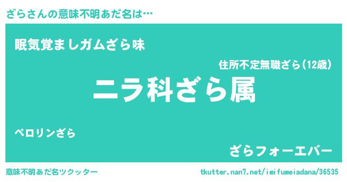 | ヒーロー風カッコイイあだ名 | 『天空の使者ざら』『ウルトラざらマン』 |