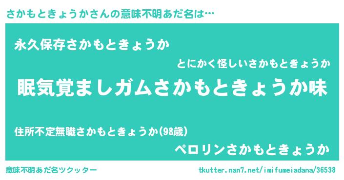 | 男性向けラノベタイトル風あだ名 | 『ノーゲーム・ノーサカモトキョウカ』 |