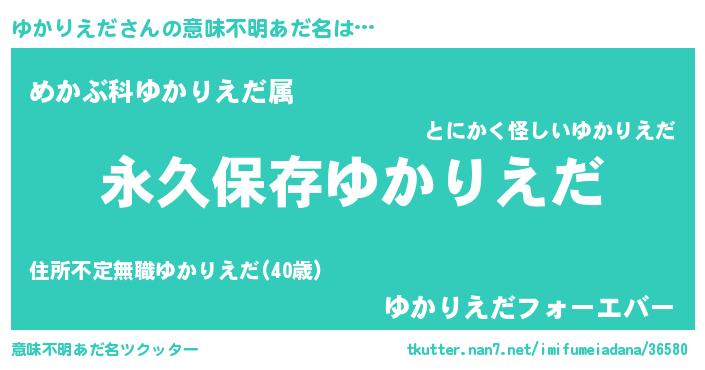 | 欧米人風あだ名 | 『ゆかりえだ・ステッグマイヤー』 |