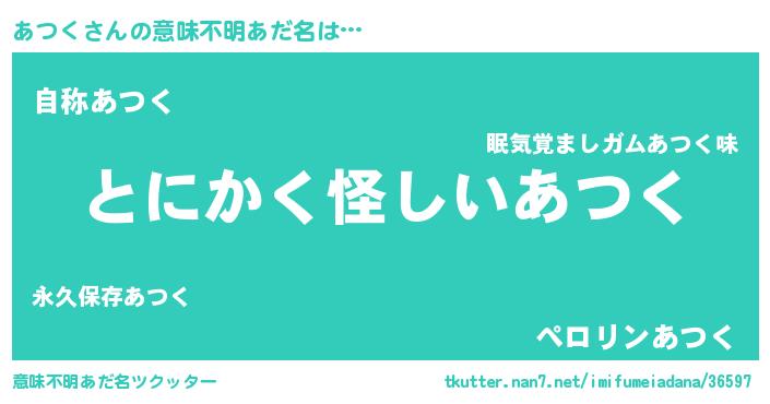 | ヒーロー風カッコイイあだ名 | 『黄金騎士アツ』『究極戦士アツク』 |