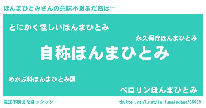 | ポケモン風あだ名 | 『ホンセウス』『ヒホンマヒトミ』 |