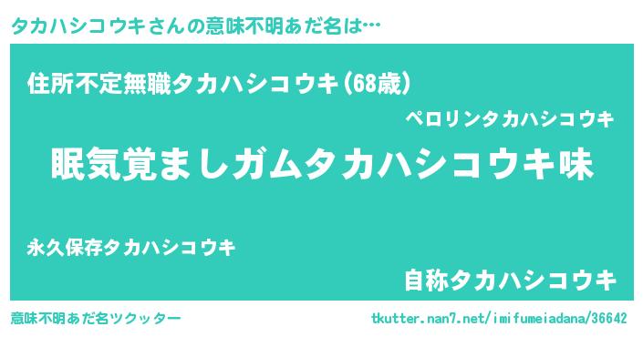 | ヒーロー風カッコイイあだ名 | 『慈愛の使者タカハシコウキ』 |