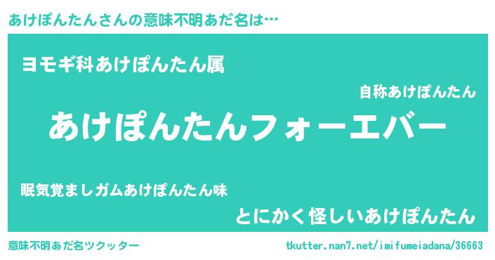 | 男性向けラノベタイトル風あだ名 | 『うちのあけぽんたんが世界を掌握している!』 |