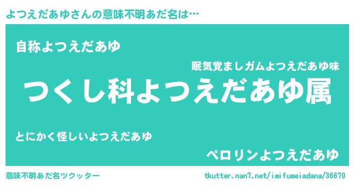 | 欧米人風あだ名 | 『トリンドルよつえだあゆ』 |