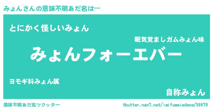 | 女子向けラノベタイトル風あだ名 | 『みょんの婚約者』『みょんは平凡を望む』 |