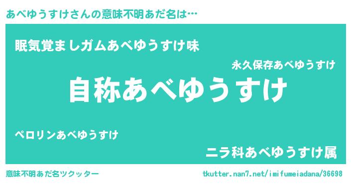 | 男性向けラノベタイトル風あだ名 | 『Re:あべゆうすけから始める異世界生活』 |