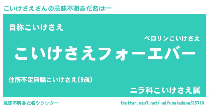 | ファンタジー風あだ名 | 『エターナルコイケサエー』『ゼコイトゥ』 |