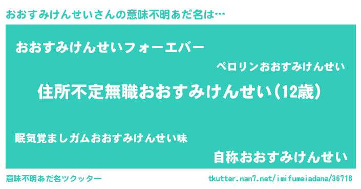 | 女子向けラノベタイトル風あだ名 | 『悪役おおすみけんせいに転生したようですが、知った事ではありません』 |