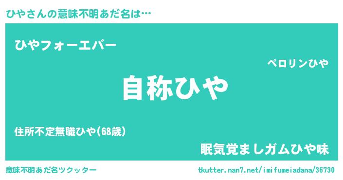 | 男性向けラノベタイトル風あだ名 | 『魔法科高校のひや』『ひやの憂鬱』 |