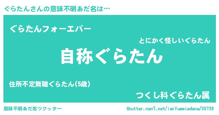 | 男性向けラノベタイトル風あだ名 | 『ぐらたんに滅ぼされるだけの簡単なお仕事です』 |