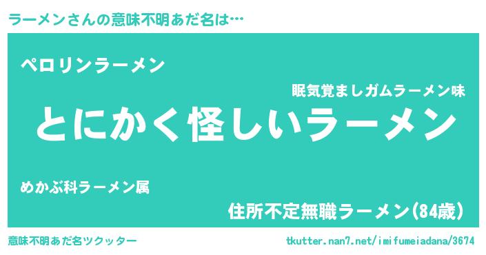 | 女子向けラノベタイトル風あだ名 | 『ラーメンは平凡を望む』 |