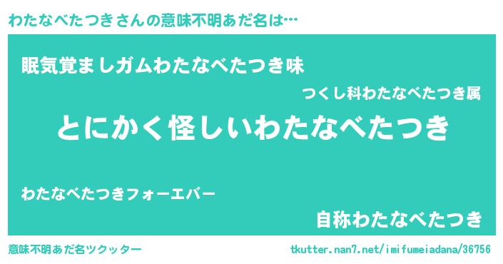 | ポケモン風あだ名 | 『ヒワタナベタツキ』『ワックウザ』 |