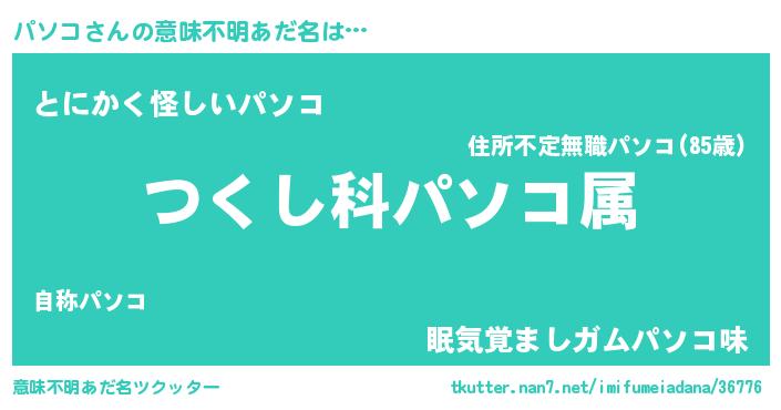 | 女子向けラノベタイトル風あだ名 | 『パソコの玉の輿計画!』『パソコ恋絵巻』 |