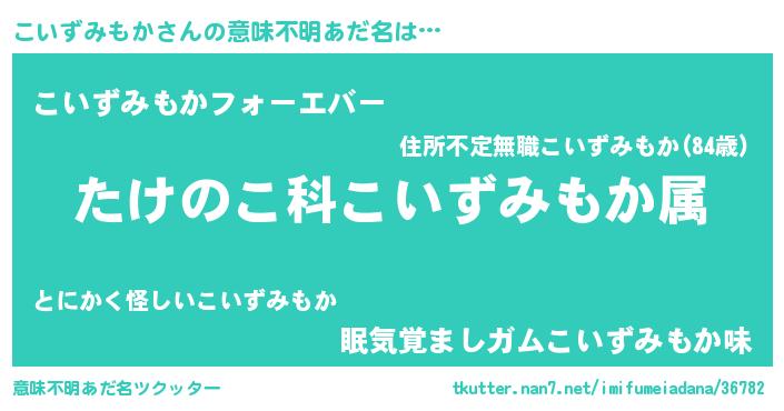 | 男性向けラノベタイトル風あだ名 | 『転生したらこいずみもかだった件』 |