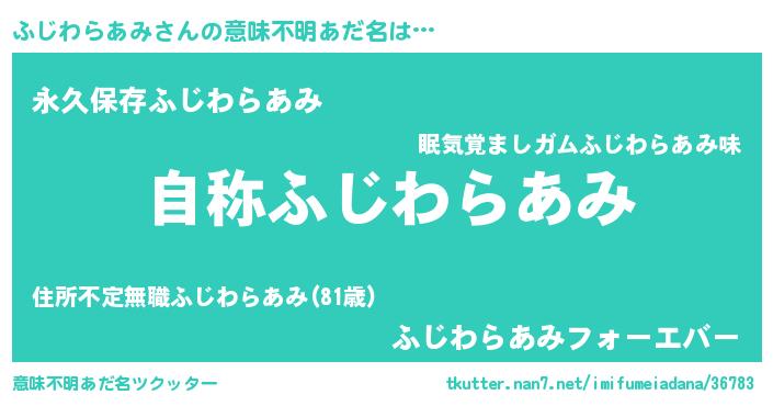 | 男性向けラノベタイトル風あだ名 | 『ふじわらあみに滅ぼされるだけの簡単なお仕事です』 |