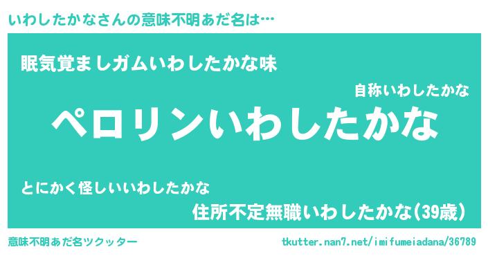 | 男性向けラノベタイトル風あだ名 | 『イワシタカナアートオンライン』 |