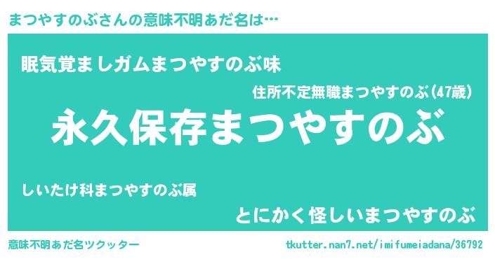 | 胡散臭い通販商品みたいなあだ名 | 『来世でも幸せになれる水素水…その名も「まつやすのぶ」』 |