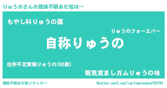 | 男性向けラノベタイトル風あだ名 | 『Re:りゅうのから始める異世界生活』 |