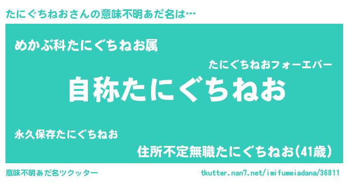 | 男性向けラノベタイトル風あだ名 | 『魔法科高校のたにぐちねお』 |