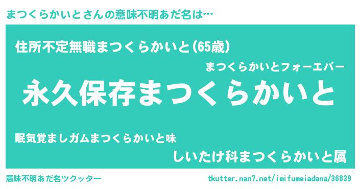 | 胡散臭い通販商品みたいなあだ名 | 『前代未聞の水素水…その名も「まつくらかいと」』 |