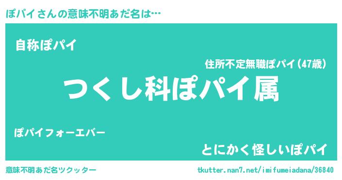 | 男性向けラノベタイトル風あだ名 | 『ぽパイ~年齢イコール彼女いない歴の魔法使い~』 |