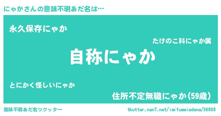 | 男性向けラノベタイトル風あだ名 | 『にゃかに滅ぼされるだけの簡単なお仕事です』 |