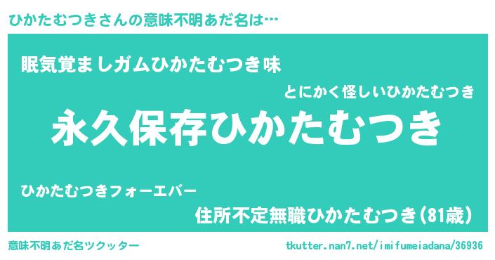 | 胡散臭い通販商品みたいなあだ名 | 『来世でも幸せになれる健康食品…その名も「ひかたむつき」』 |