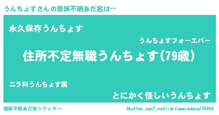 | 男性向けラノベタイトル風あだ名 | 『この素晴らしい世界にうんちょすを!』 |