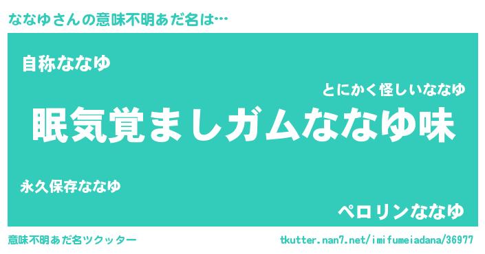 | 女子向けラノベタイトル風あだ名 | 『死神ななゆの再婚』『ななゆ様がみてる』 |